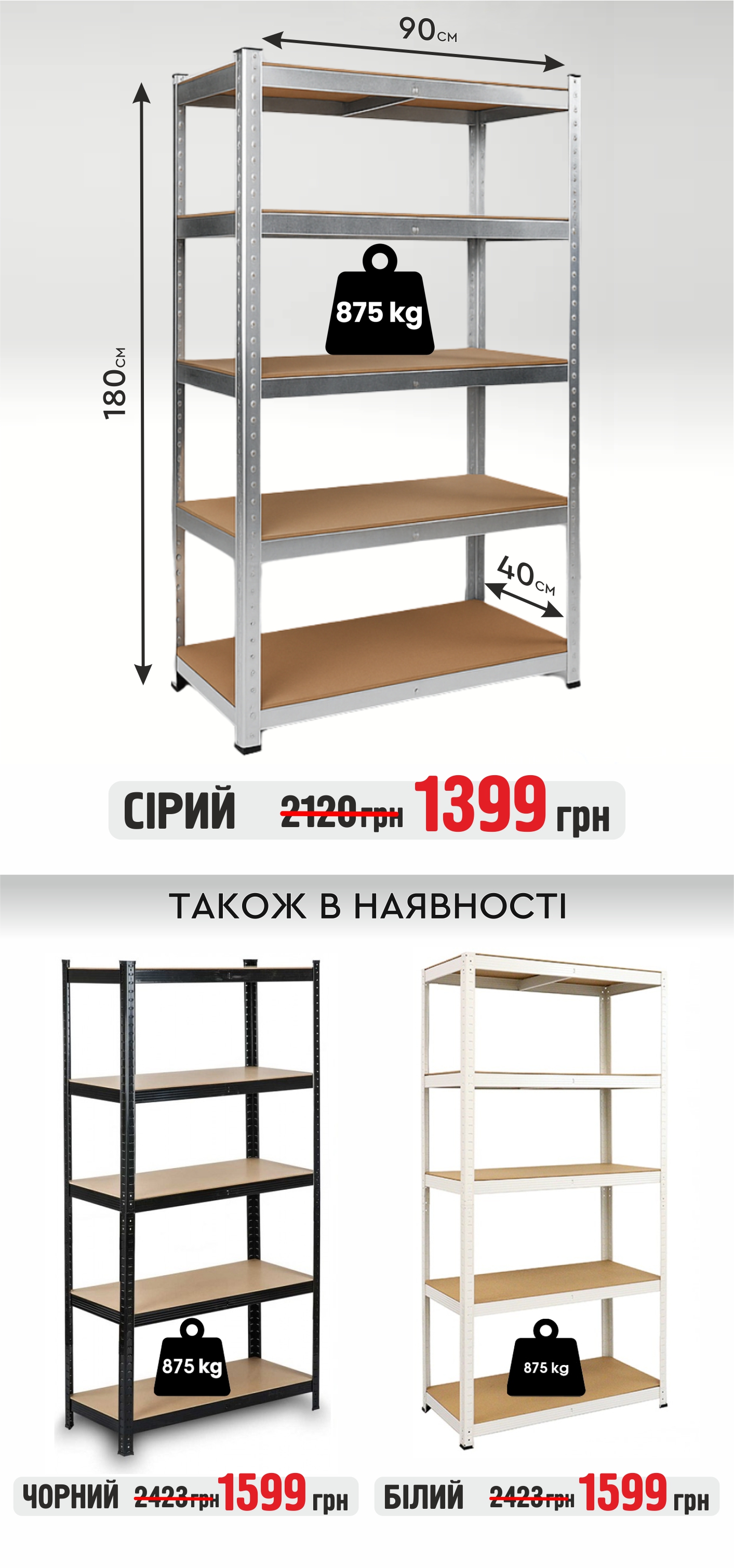 Функціональний та стійкий стелаж, який ідеально підійде для гаражу, складу, магазину, підвалу, офісного приміщення та навіть балкону.
